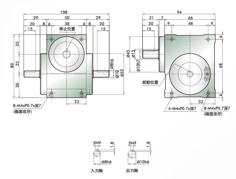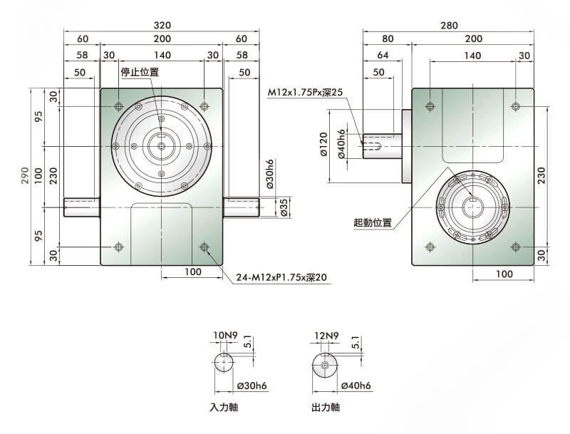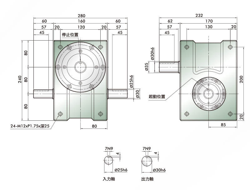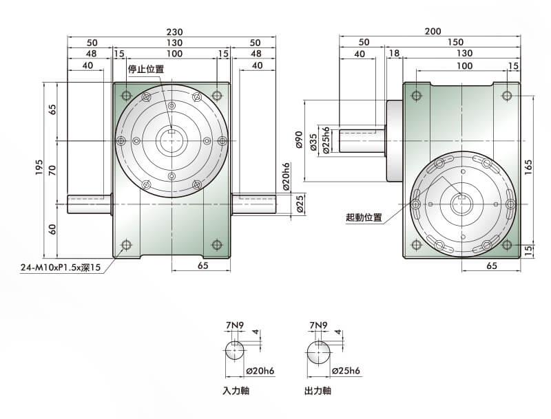 此系列機種為典型傳統(tǒng)式心軸造型,其安裝配件之加工安裝配合齒輪、聯(lián)軸器或聯(lián)軸盤,需特別注意孔徑公差(+0.015/-0)及鍵槽公差(+0.015/-0),其使用場合在輸送帶驅(qū)動、齒輪驅(qū)動、無間隙聯(lián)軸器結(jié)合驅(qū)動居多。